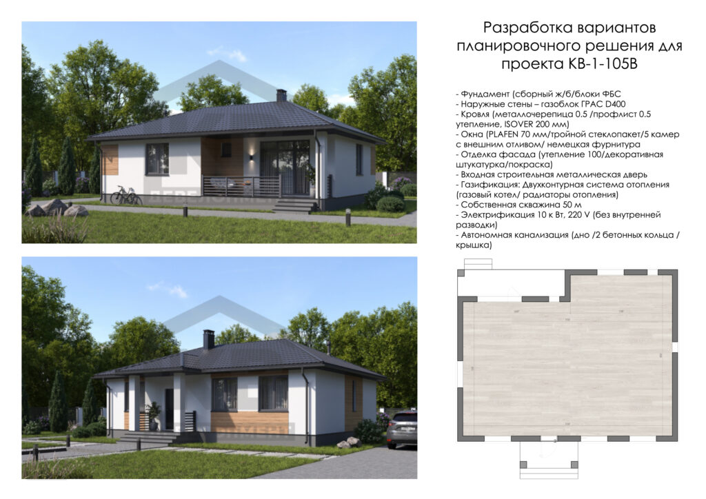 - Наружные стены – газоблок ГРАС D400