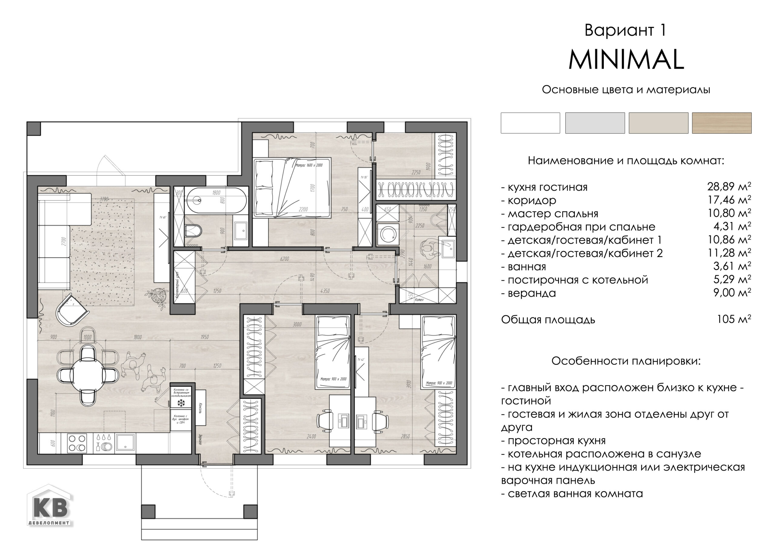 - Внутренняя отделка (штукатурка гипсовая механизированная по маякам / полусухая стяжка пола)